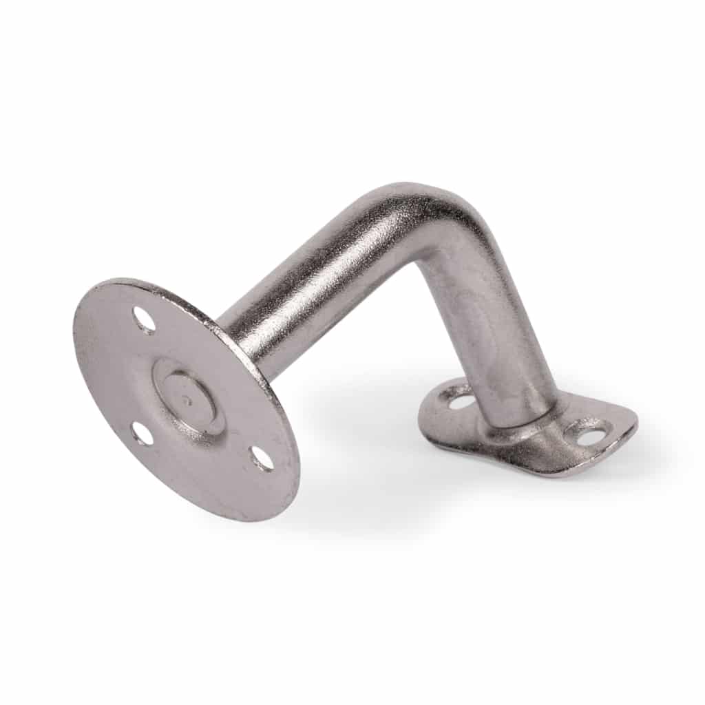 Silverfärgad (matt) ledstångskrok där måttet mellan centrum på fästet och väggen är 67 mm. Monteringsplattans diameter är 48 mm. För inomhusbruk. Skruv ingår ej till ledstångskroken.