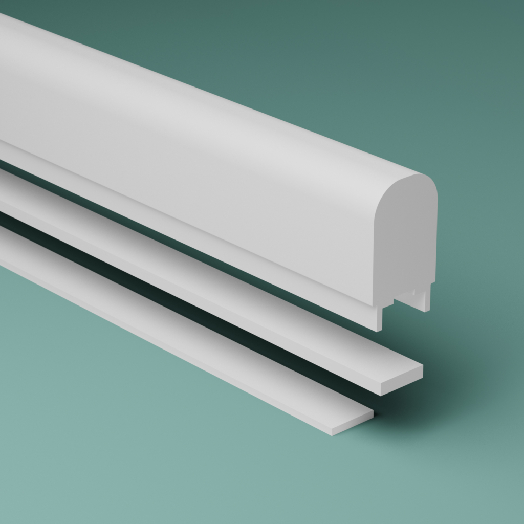 Överliggare Stockholm i vitlackad MDF (NCS S0502Y, glans 35) där monterings- och täcklist ingår.