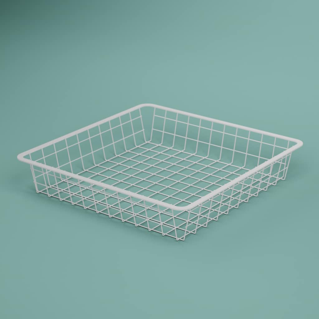Klassisk trådback med nätmönster för förvaring. Används i fristående stativ Mini eller med universalglidlist i befintlig garderob. Passar även utdragsram 450. Höjden tar 1 skena i stativgavlarna.