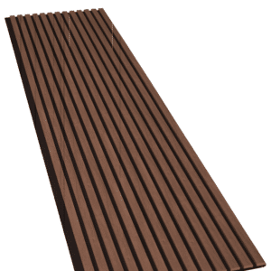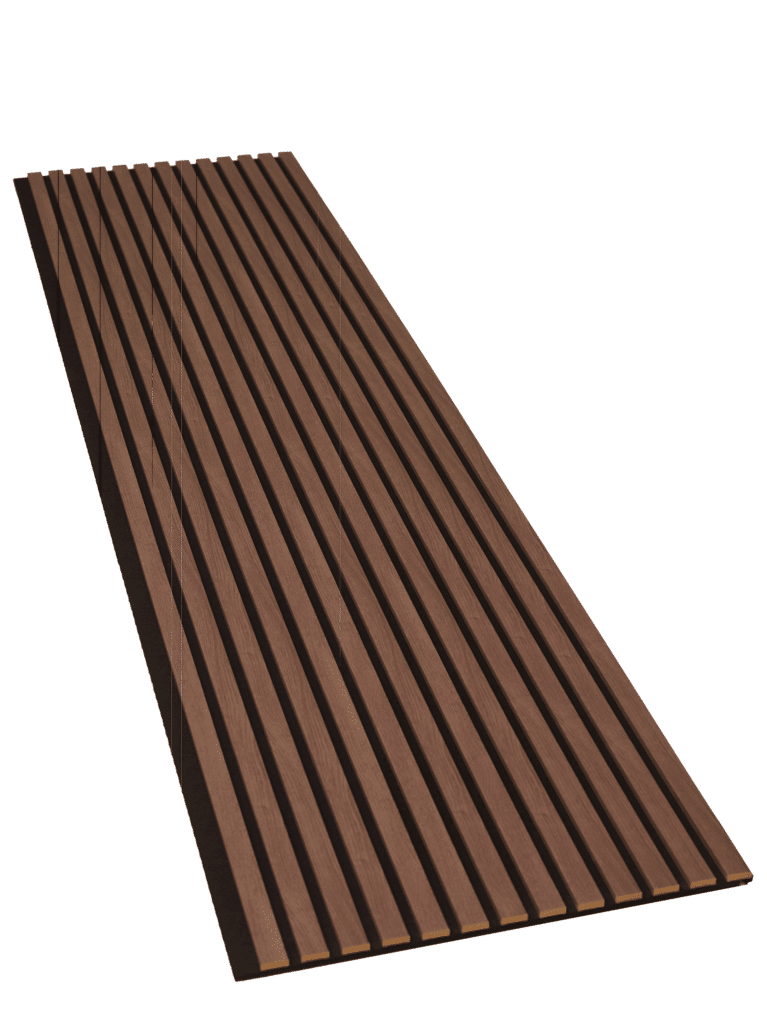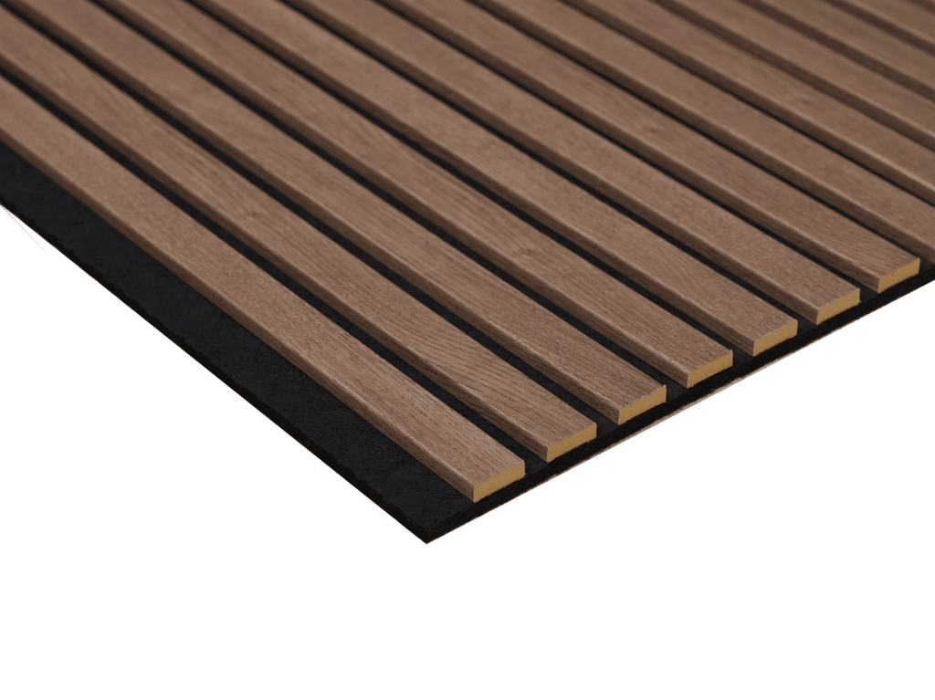 - Akustikpanelen består av 13 stycken ribbor med en genomfärgad svart MDF-kärna som har en naturtrogen dekor.