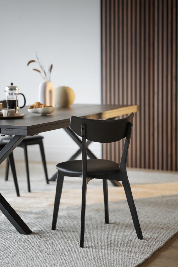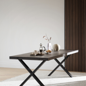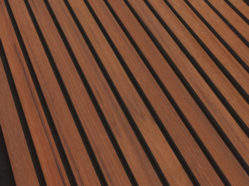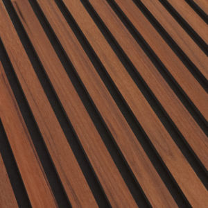 - Akustikpanelen består av 12 stycken ribbor med en genomfärgad svart MDF-kärna som har en naturtrogen dekor.