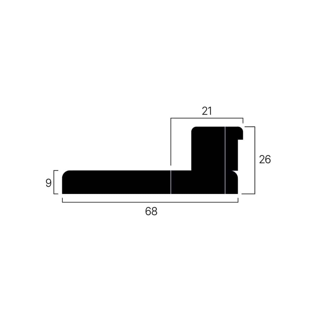 Tröskel i massiv och lackad ek, 09 93. Hög tröskel för våtrum med möjlighet till uppvik av tätskikt.