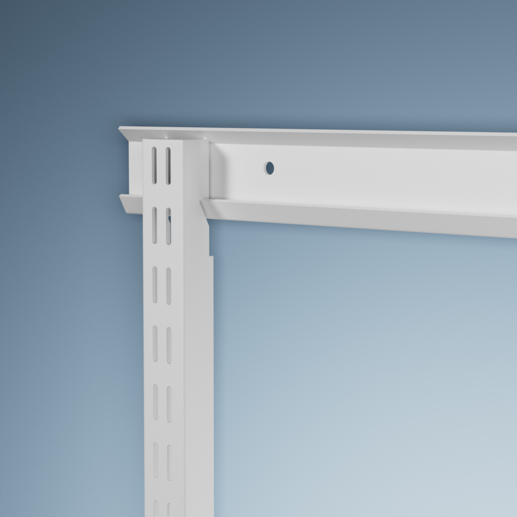 Bärlist till hängskenor för flexibel montering med minsta möjliga antal hål i väggen. Bärlisten skruvas fast i väggen. Kombineras med hängskenor som man drar till önskad sidledsposition. Finns i två längder men kan kapas till önskad längd. 7 skruvhål.