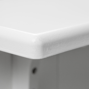Fönsterbänk i A-klassad och vitlackad (NCS S0500-N, glans 35) MDF, fasade kanter och hörn.