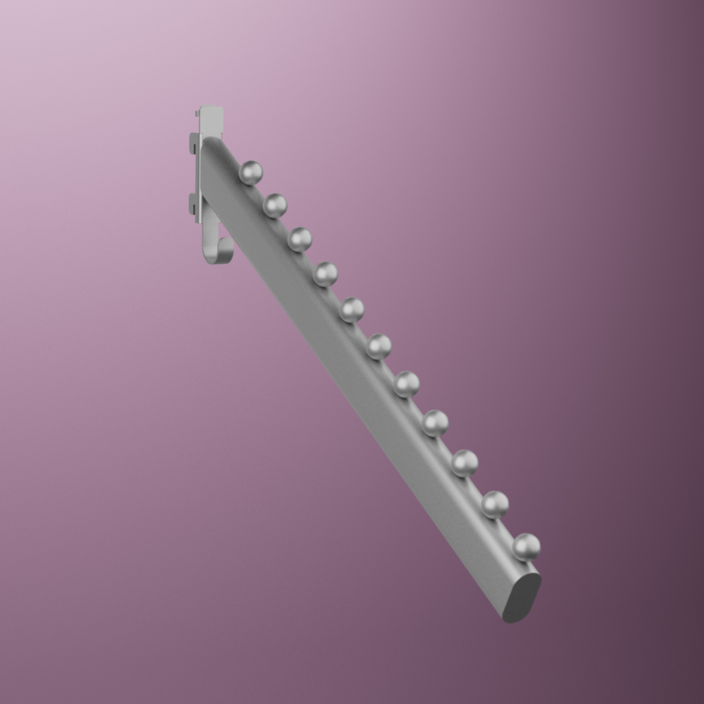 Lutande konsol med 11 knoppar som fungerar som stopp för klädgalgar. Passar perfekt för den som har en liten yta men mycket kläder.