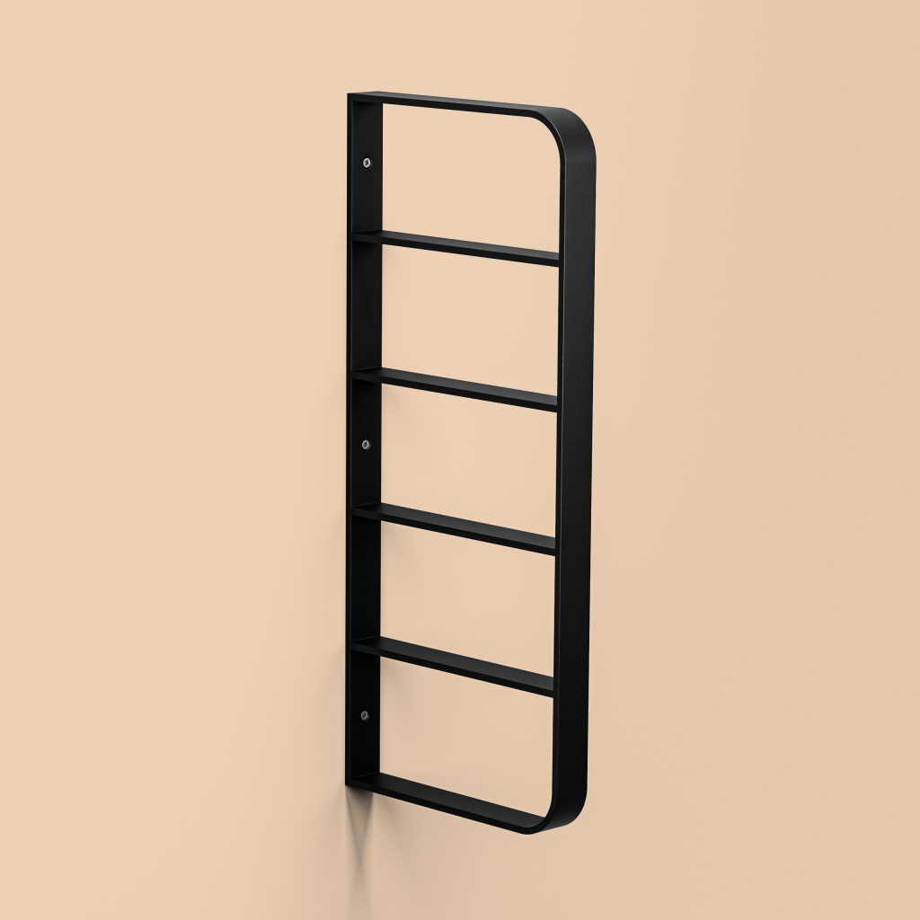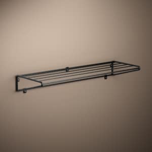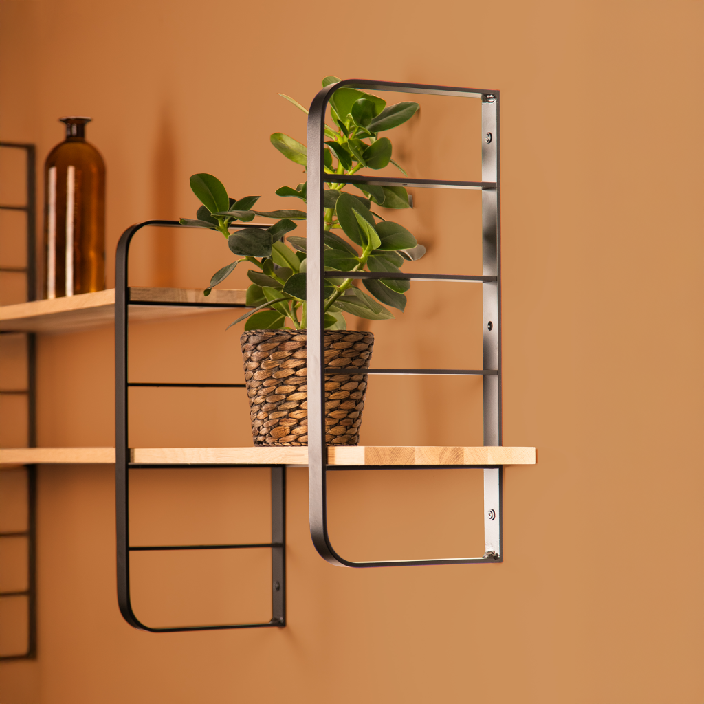 Ge dina hyllor en solid grund med vår hyllgavel i massiv metall. Den kraftfulla konstruktionen tillsammans med den svarta pulverlackerade finishen enligt NCS S-9000 ger ett sofistikerat och industriellt intryck. Förborrade hål säkerställer en enkel installation och en säker förankring – en idealisk lösning för både moderna och klassiska inredningar.