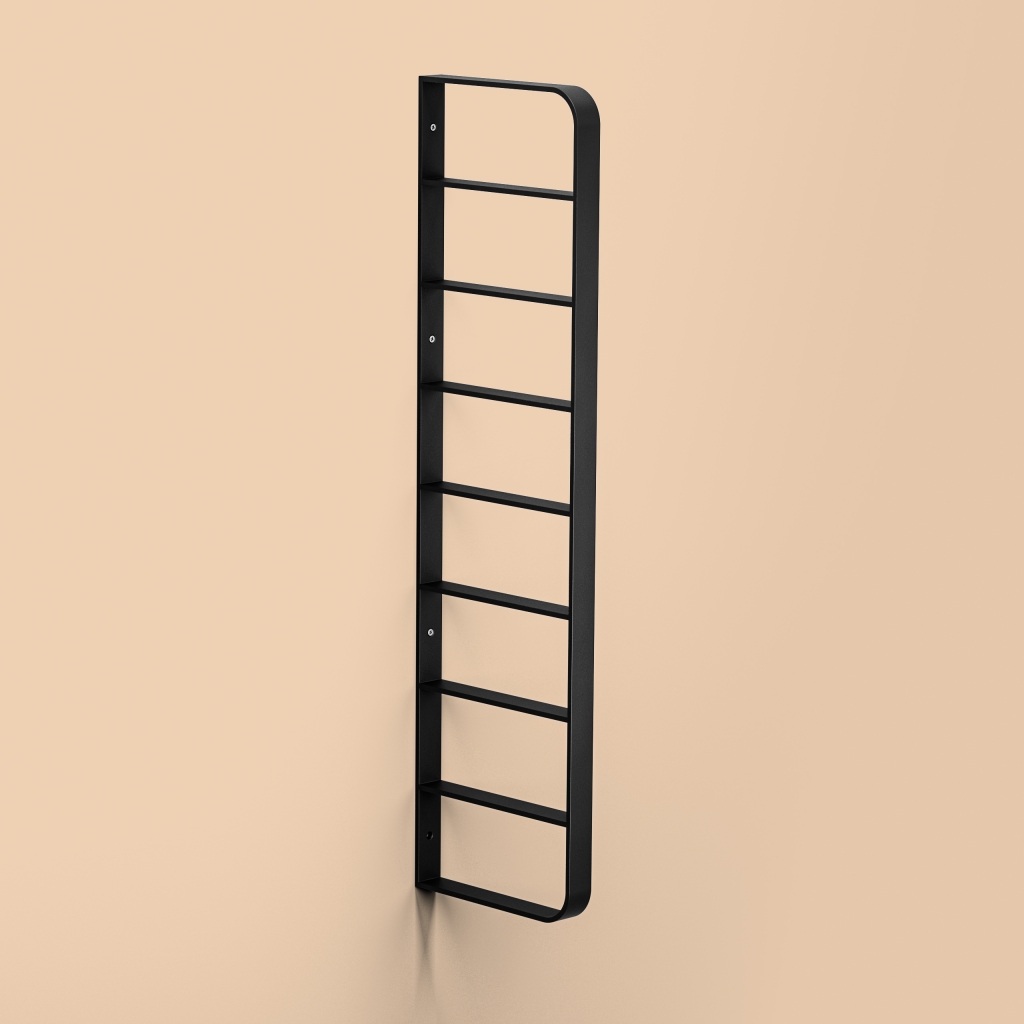 Med sin massiva metallkonstruktion och eleganta, svarta pulverlackerade yta erbjuder denna hyllgavel en robust men stilren detalj till din inredning. De förborrade hålen gör montering smidig, så att du snabbt kan skapa en enhetlig och säker hyllmiljö där design och funktion går hand i hand.