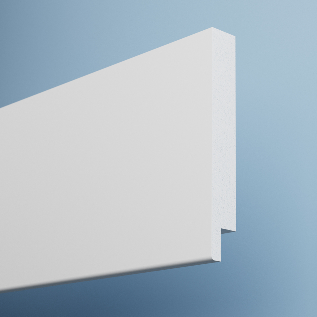 Kakellist i vitlackad (NCS S0502-Y, glans 30) MDF vars fals täcker max 15×10 mm (höjd x djup.)