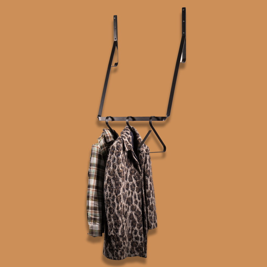 Klädhängare i metall, pulverlackad i svart NCS S-9000. Klädhängaren är perfekt för det mindre utrymmet. Förborrade hål