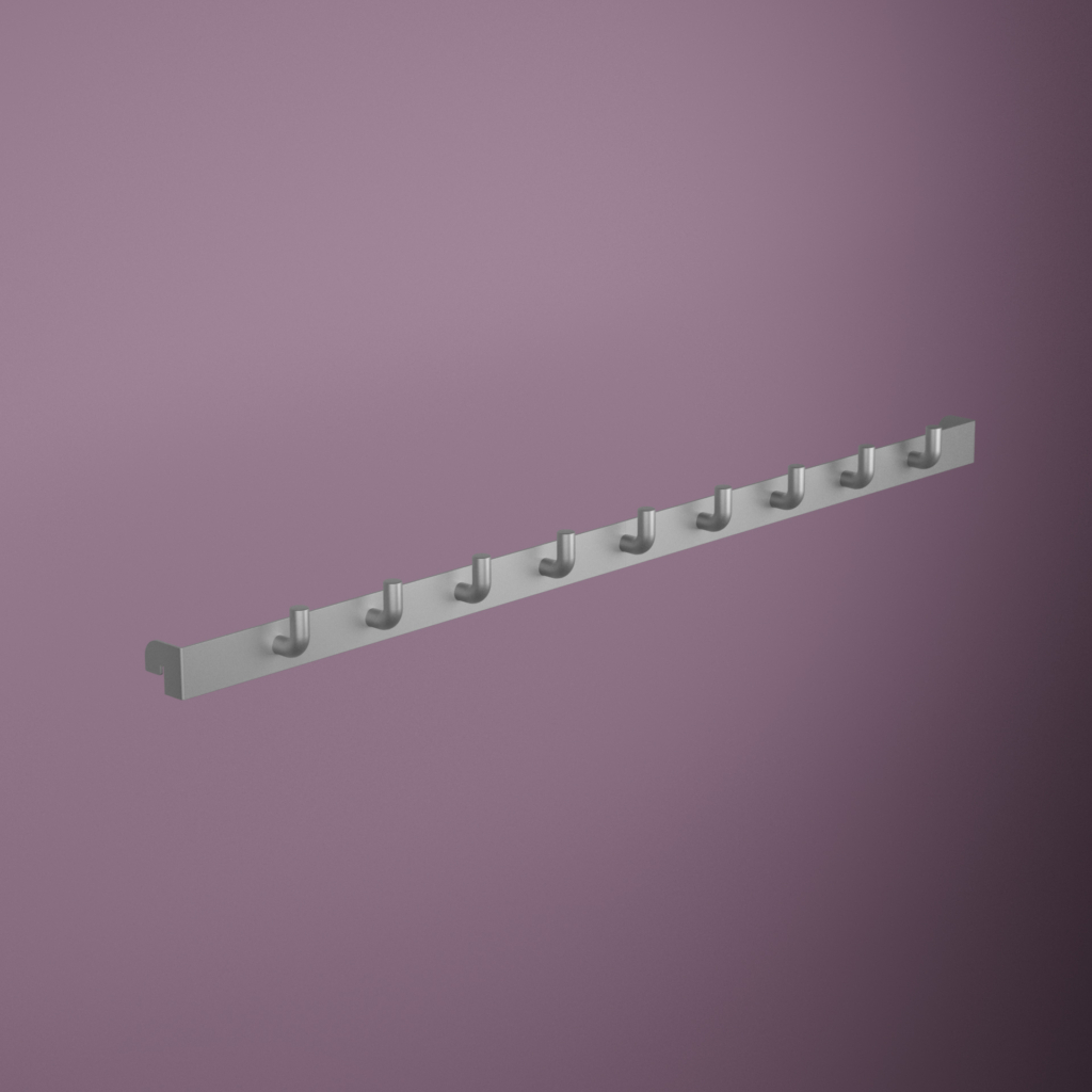 Kroklist i metall för praktisk upphängning av prylar, kläder, accessoarer, väskor. Fästs i häng-eller väggskena alternativt väggfäste. Monteras i skenor på cc 600 mm.