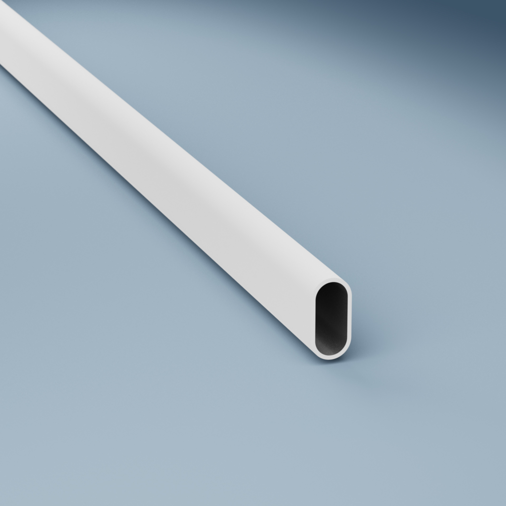 Oval klädstång som kan fästas på olika sätt för att skapa förvaringslösningar för hängande kläder. Kombineras med olika fästen. Kan kapas till önskad längd.