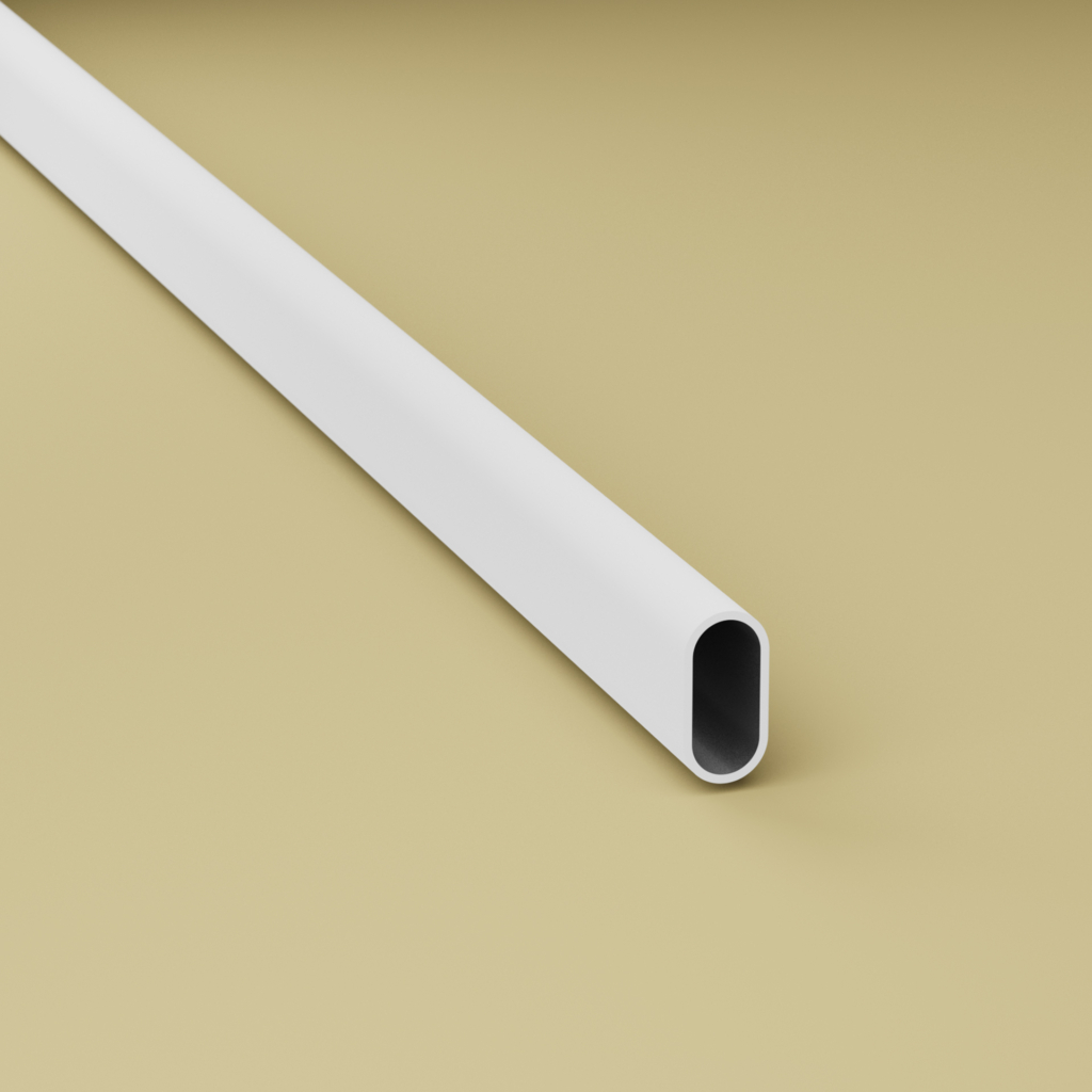 Oval klädstång som kan fästas på olika sätt för att skapa förvaringslösningar för hängande kläder. Kombineras med olika fästen. Kan kapas till önskad längd.