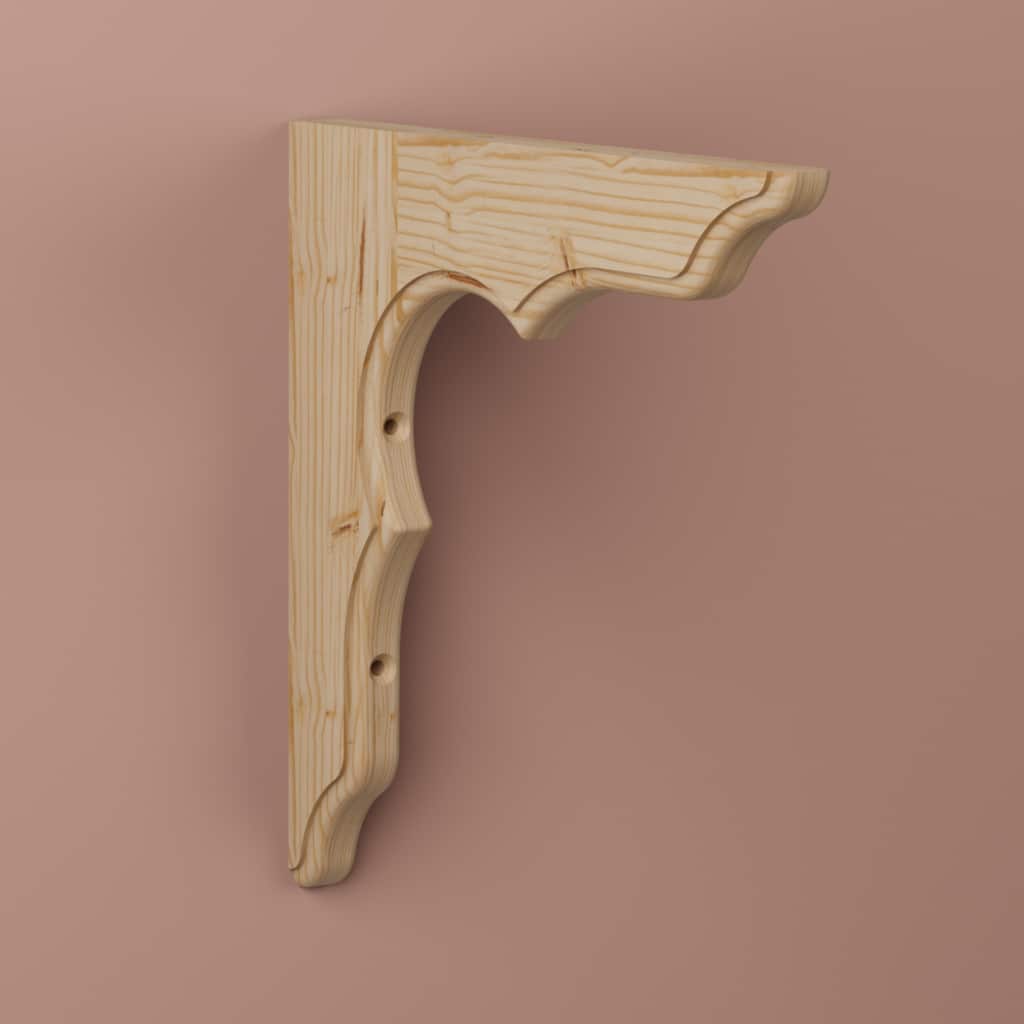 Konsol i obehandlad furu. Förborrade och försänkta borrhål.