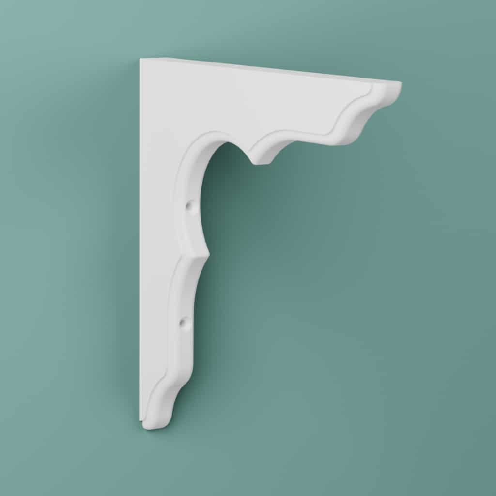 Konsol som är vitlackad i NCS S0500-N, glanstal 35. Förborrade och försänkta borrhål.