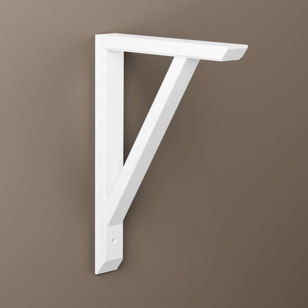 Vitlackad (NCS S0500-N, glans 35) konsol med förborrade och försänkta borrhål.