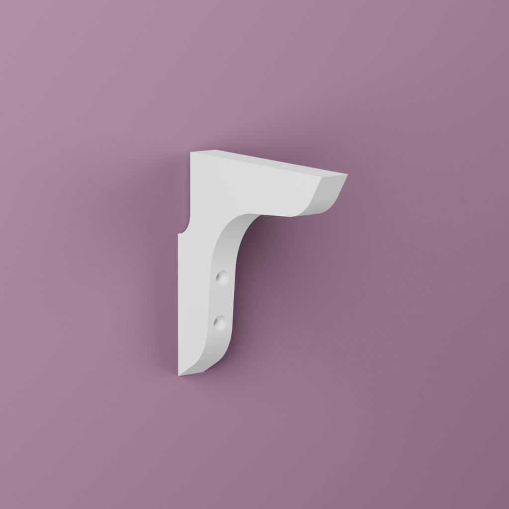 Konsol som är vitlackad i NCS S0500-N, glanstal 35. Placeras mot foder t.ex. vid montering av fönsterbänk.
