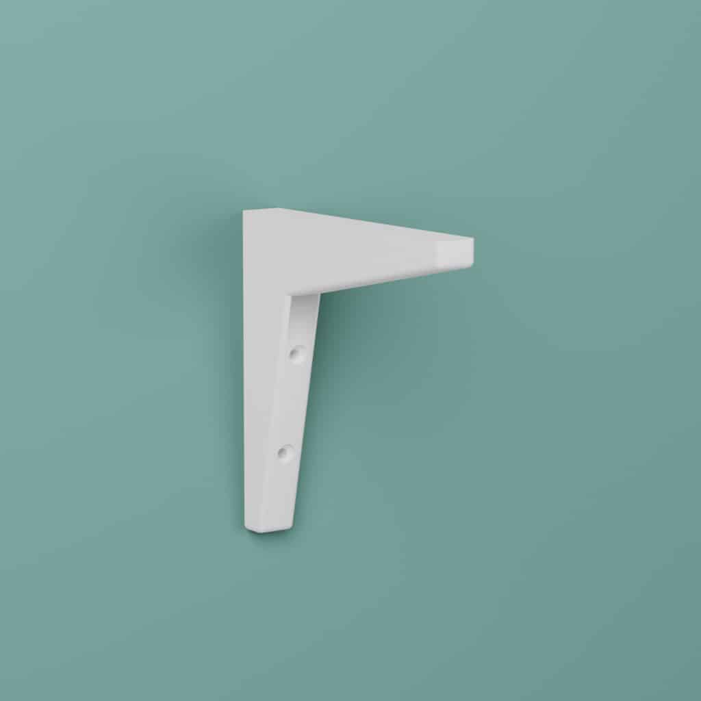 Vitmålad (TX 200 01 vit bas, glans 40) träkonsol med förborrade och försänkta borrhål. En konsol som är elegant och stilren med lätt rundade kanter.