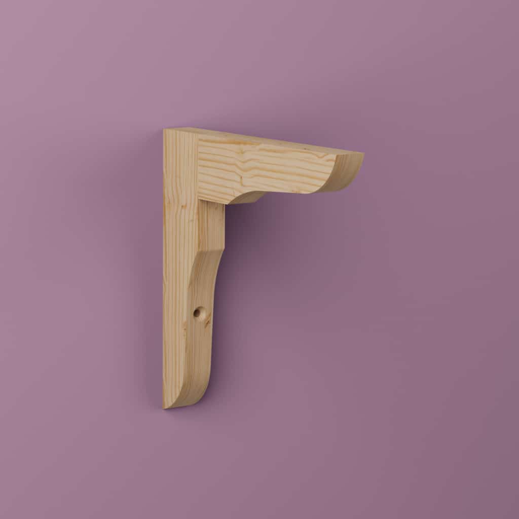 Konsol i obehandlad furu. Förborrade och försänkta borrhål.