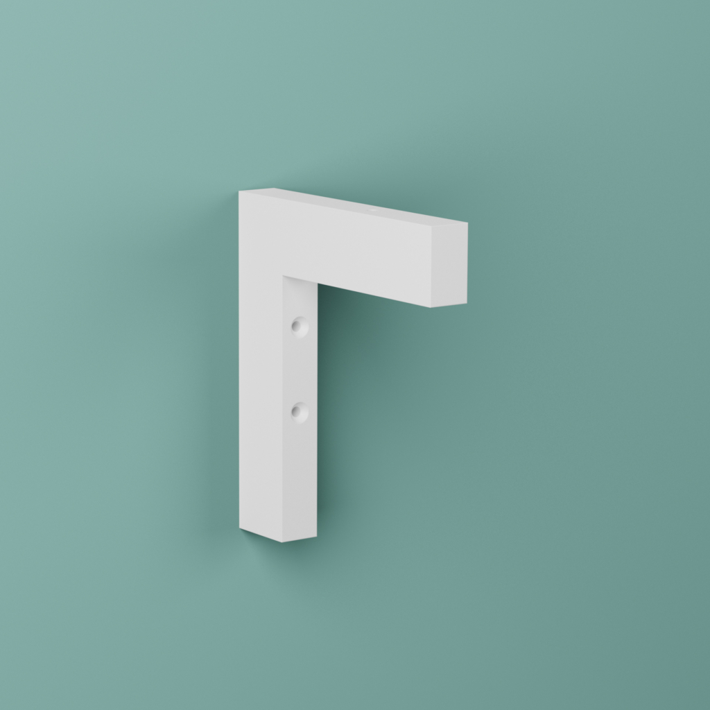Vitlackad (NCS S0500-N, glans 35) konsol med förborrade och försänkta borrhål.
