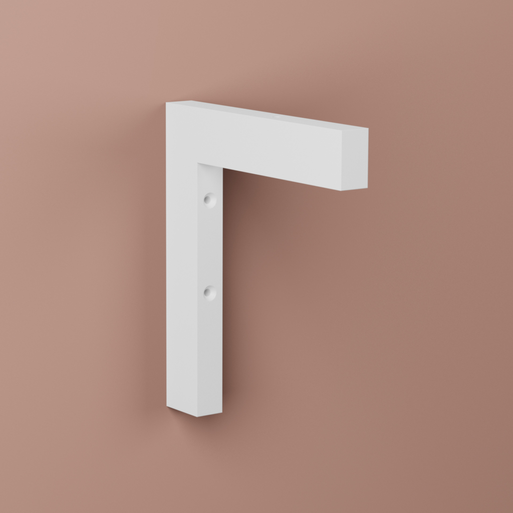 Vitlackad (NCS S0500-N, glans 35) konsol med förborrade och försänkta borrhål.
