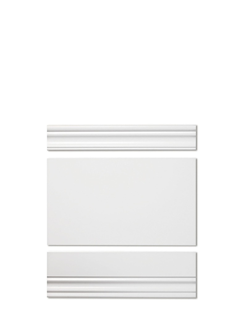 Vår breda golv- och taksockel Royal Antique ger ditt rum det där lilla extra med sitt galanta uttryck. Ta fram fram linjerna från förr och anpassa dem till ditt egna hem. Mellanskivan kan anpassas för lägre höjd. Paket med panelskiva, bröstlist och golvlist i vitlackad (NCS S0502Y, glans 35) MDF. Monterad höjd 400 mm.