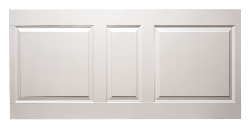 Formpressad och vitlackad (NCS S0502Y, glans 35) panelskiva i HDF. Monterad höjd inkl lister 980 mm.