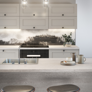 Stavlimmad, obehandlad bänkskiva i B/C-kvalité med postformad framkant. Monteras med möbelvinklar för rörelsen och efterbehandlas med t.ex. olja, vax eller lack. Produkten är FSC®-certifierad.