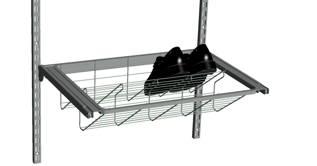 Skoback för montering i utdragsram eller stativgavel, lämpad för idrotts- och promenadskor.