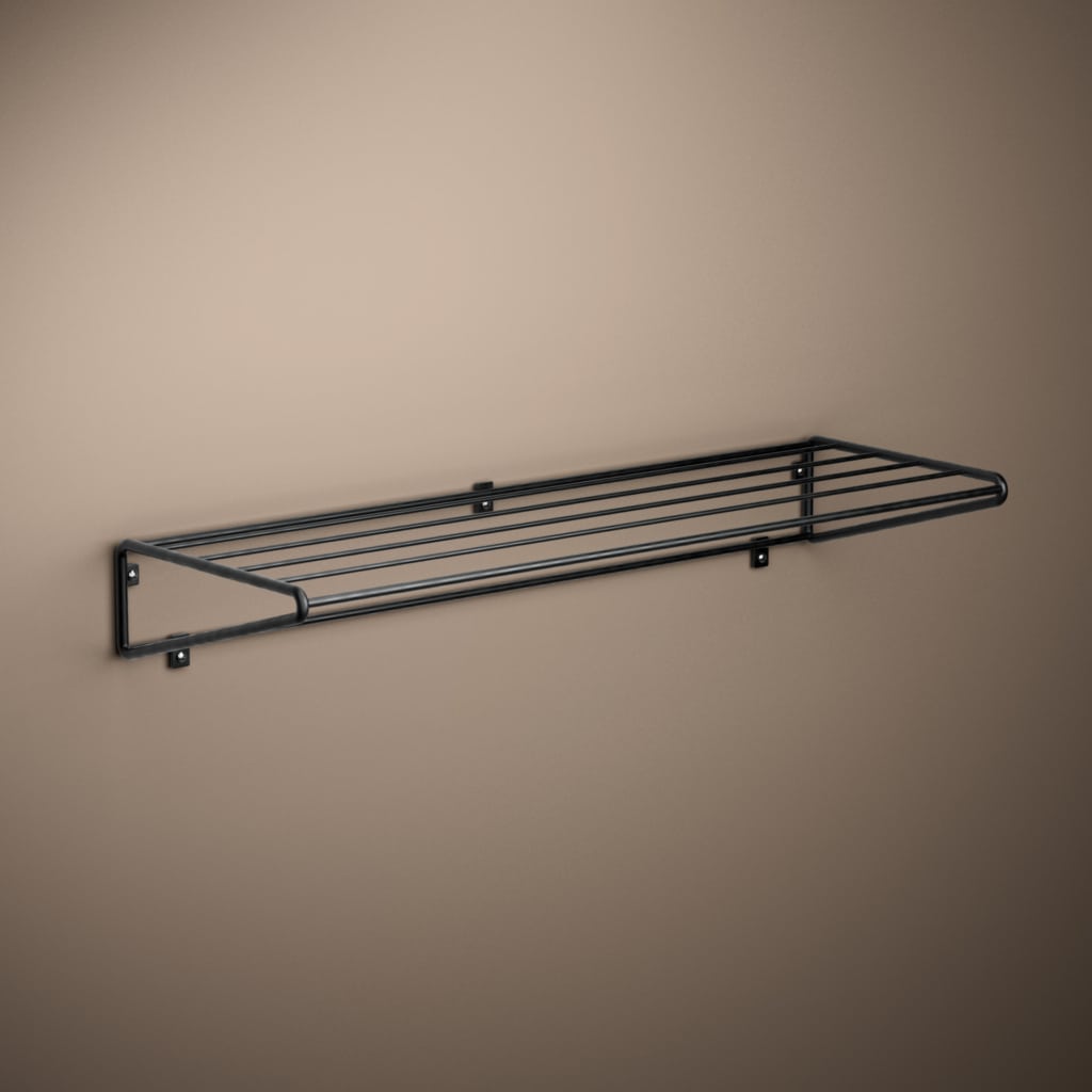 Ett av hemmets viktigaste rum är hallen. Hedda är en enkel, funktionell och stilren vägghängd skohylla i svart pulverlackerad metall. Bra förvaring för skor på hyllan. Komplettera med flera skohyllor vid behov.