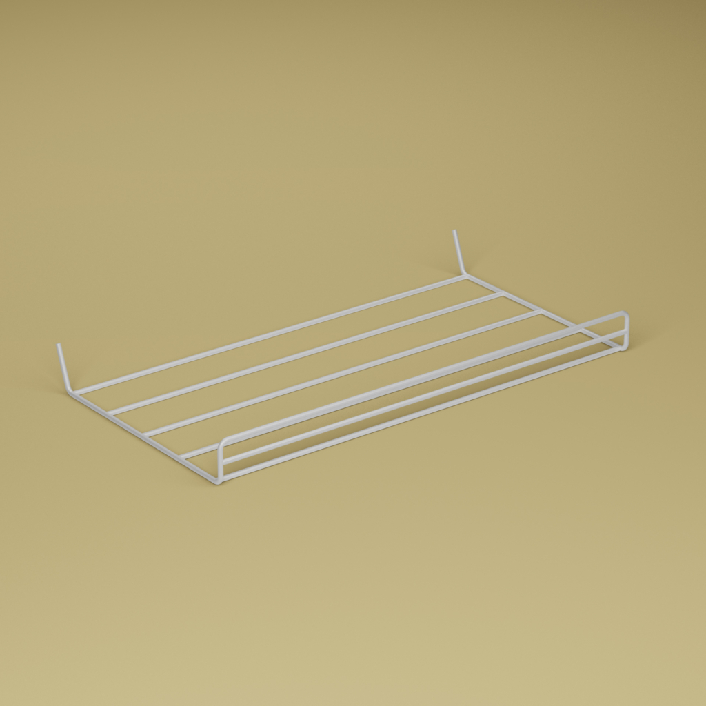 Skohylla med enkelfäste för seriemontering på skenpar med centrumavstånd 600 mm.