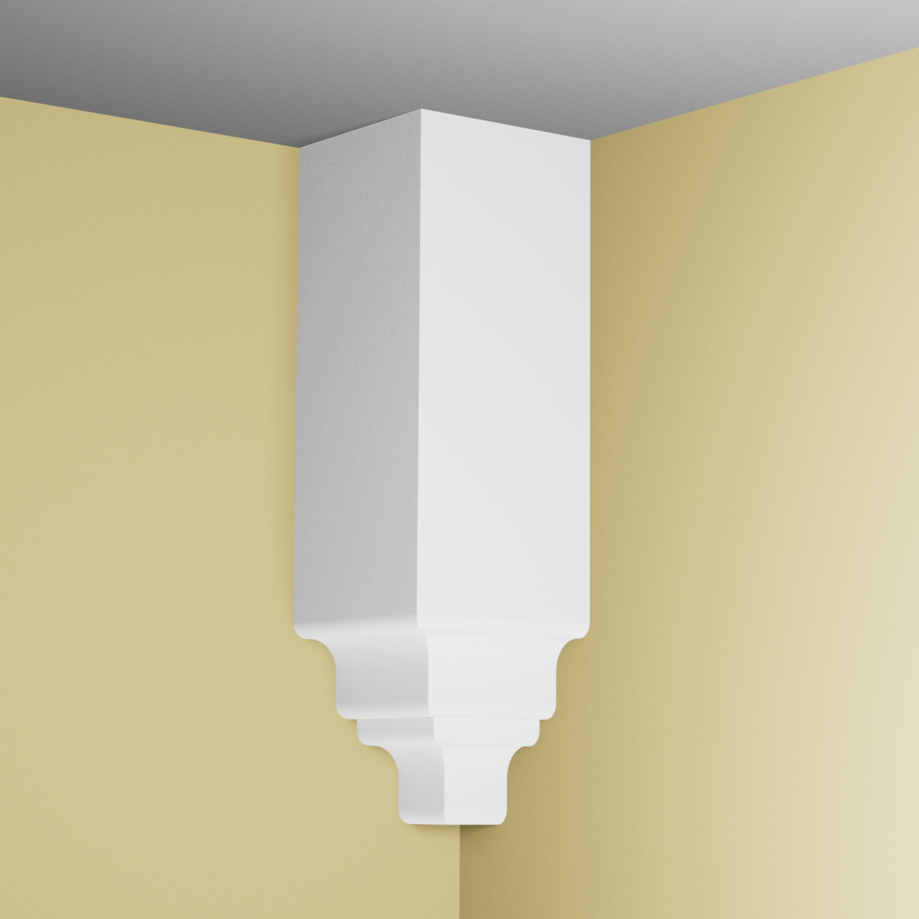 Takkloss. Invändiga hörn. Snygg dekoration och enkel montering. Slipp krångliga geringar. (för montering inomhus). Säljs i par och limmas fast med t ex sättlim. NCS S0502-Y. Passar trälist upp till 21×58.