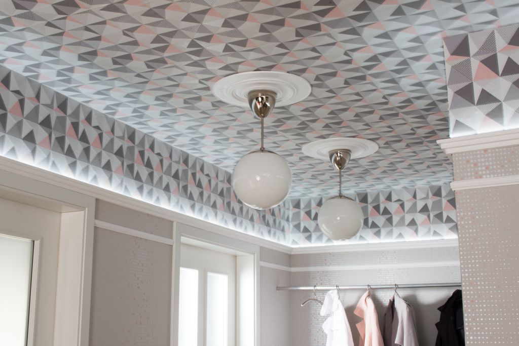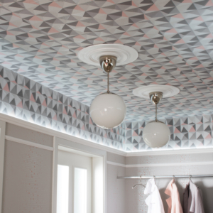 Takrosett med stilrent stuckaturmönster i lättviktsmaterialet polystyren.