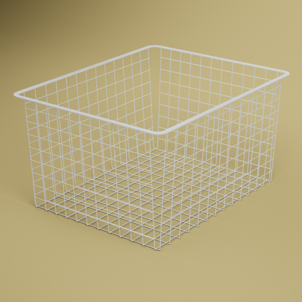 Klassisk trådback med standarddjup för förvaring. Används i fristående stativ med tvärstag 450 eller med universalglidlist i befintlig garderob. Passar även utdragsram 600. Höjden tar 3 skenor i stativgavlarna.