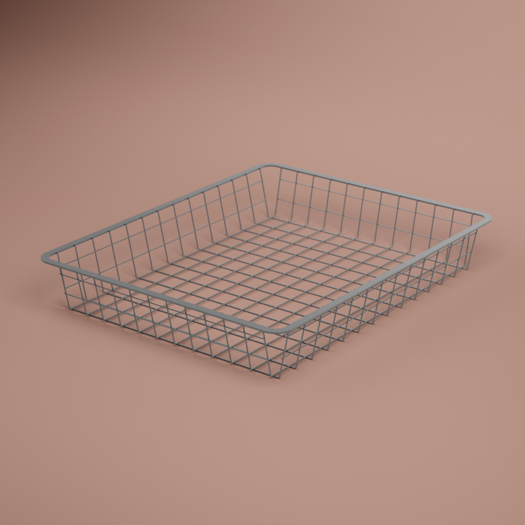 Klassisk trådback med standarddjup för förvaring. Används i fristående stativ med tvärstag 450 eller med universalglidlist i befintlig garderob. Passar även utdragsram 600. Höjden tar 1 skena i stativgavlarna.