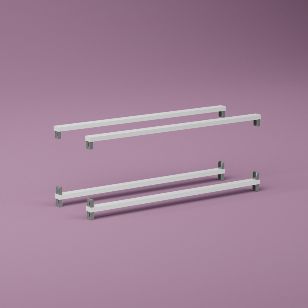 Tvärstag för att fästa ihop stativgavlarna för att bygga ihop ett backstativ i önskad storlek. Säljs 2 par, ett övre par och ett skarvpar i varje förpackning.