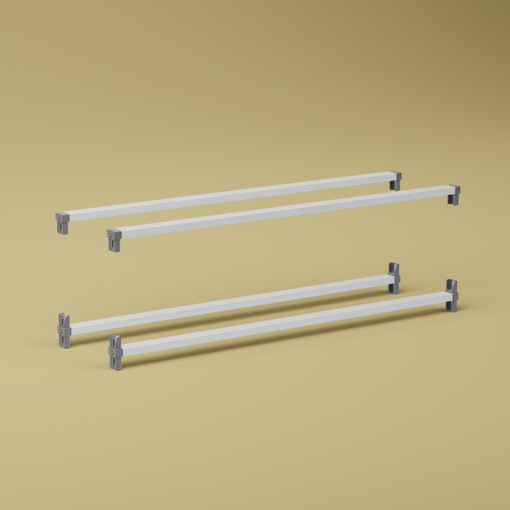 Tvärstag för att fästa ihop stativgavlarna för att bygga ihop ett backstativ i önskad storlek. Säljs 2 par, ett övre par och ett skarvpar i varje förpackning.