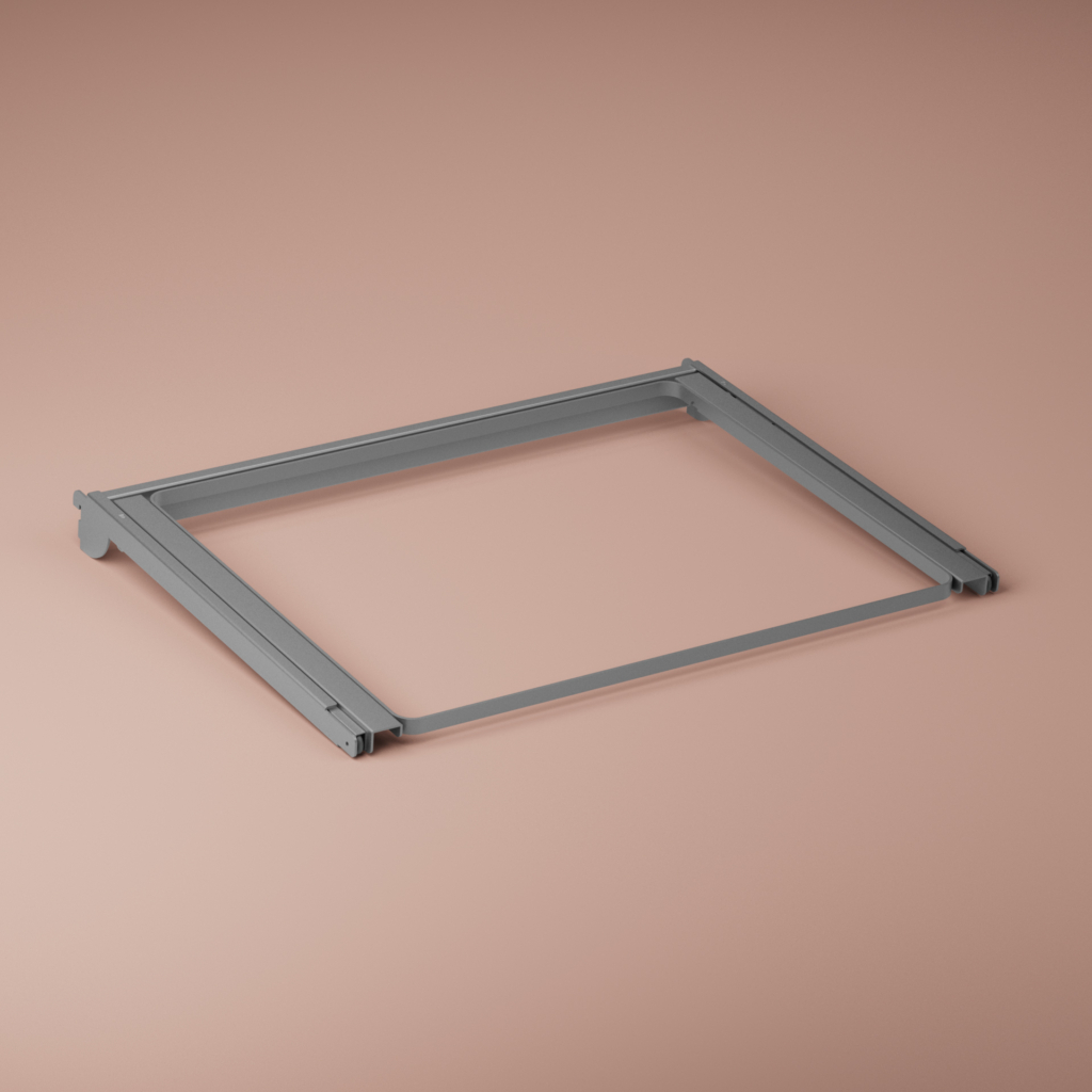 Utdragsram till förvaringsbackar som fästs i häng- eller väggskena alternativt väggfäste. Behöver ingen extra konsol för att monteras. Passar backar 427×527. Monteras i skenor på cc 600 mm.