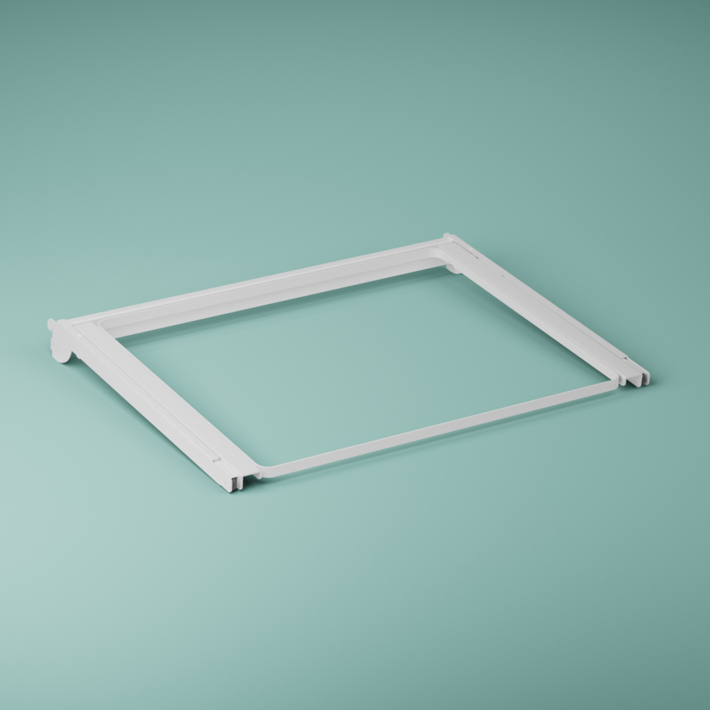 Utdragsram till förvaringsbackar som fästs i häng- eller väggskena alternativt väggfäste. Behöver ingen extra konsol för att monteras. Passar backar 427×527. Montera skenor på cc 600 mm.